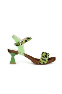sandali con fascia in cavallino maculato e tacco a clessidra verde