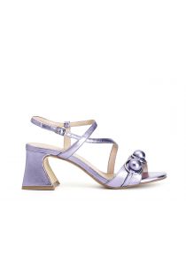 sandali con fascia in pelle laminata e accessorio tre sfere glicine