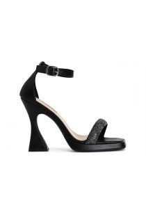 Sandali con fascia in strass e toppone. tacco alto a rocchetto. cinturino regolabile alla caviglia.