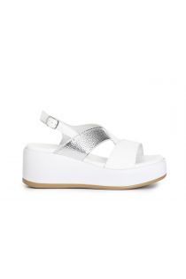 sandali con incrocio bicolore bianco/argento
