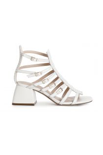 Sandali a gabbia in nappa intrecciata con listini e fibbie. il soletto è in pelle. calzatura che può essere indossata tutto il giorno grazie al tacco a base larga alto 6.3 cm e alla comoda base d'appoggio.