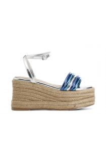 sandali con mignon imbottiti su zeppa blu