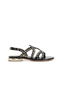 sandali con multilistini e strass nero