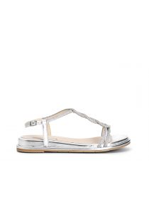 Sandali a "t" con multistrass a decoro. calzatura comoda con fussbett. il soletto è in pelle.
