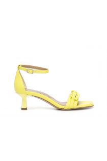 Sandali con punta squadrata e tacco 50, accessorio catena, fodera e soletto in pelle.