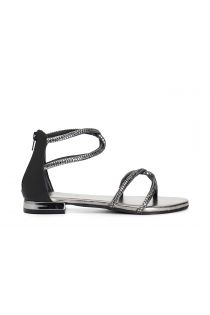 Sandali con strass termosaldati. toppone e cerniera sul retro. fodera e soletto sono in pelle. il tacco è di 1.6 cm.