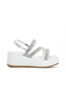 sandali con zeppa e tre fasce con strass argento