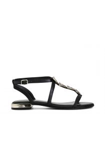 Sandali donna in pelle. accessorio triangoli fatti di strass. cinturino con fibbia alla caviglia.