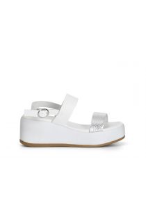 Sandali modello frate con fascia bicolore. calzatura dalla forma comoda. zeppa di 6 cm.