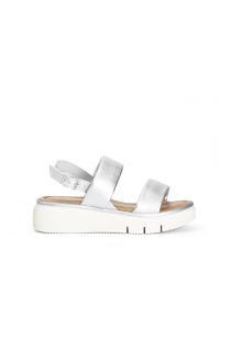 sandali doppia fascia effetto laminato argento