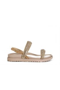 Sandali modello frate con due fasce piatte decorate da luminosi strass. cinturino al tallone.