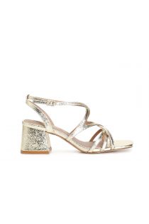 Sandali effetto metallico con incrocio. il soletto è in pelle. comodo tacco di 5.6 cm.
