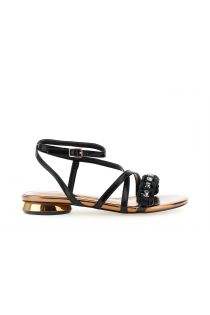sandali effetto pelle laminata laccio caviglia e strass nero