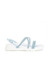 Sandali asimmetrici con quattro fasce con strass sottopiede in pelle su comodo footbed.