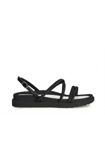Sandali asimmetrici con quattro fasce con strass sottopiede in pelle su comodo footbed.