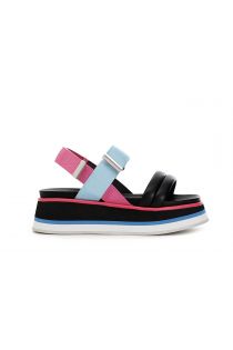 Sandali fasce in nylon colorato con chiusura velcro, suola in micro multistrati colorati e comodo fusbett.
