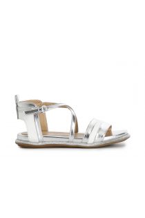 Sandali bassi in similpelle laminata multicolor dai toni pastello. il tallone è scoperto ma sorretto allo stesso tempo da una cornice laterale in similpelle. cinturino alla caviglia.