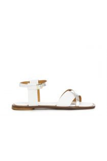 Sandali in pelle multicolor con fasce asimmetrice e cinturino alla caviglia.