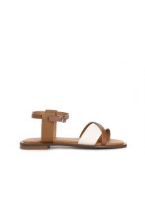 Sandali in pelle multicolor con fasce asimmetrice e cinturino alla caviglia.