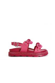 Sandali frate con doppia catena in tono effetto color block. comodo fussbett e inserto di strass laterale sulla suola. tacco alto 40mm.