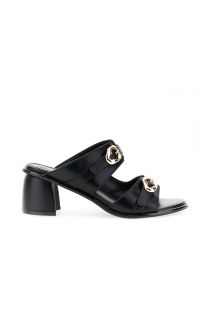 Sandali modello frate effetto pelle con doppia fibbia dorata ideali per uno stile elegante e moderno. soletto in pelle e tacco largo di 6 cm per comfort e stabilità. perfetti per valorizzare ogni look quotidiano.