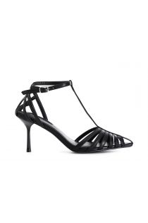 Sandali gabbia a "t" . cinturino con fibbia alla caviglia. soletto in pelle. tacco alto 70 mm.
