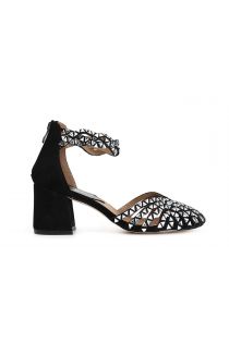 Sandali a gabbia con cerniera sul toppone arricchiti da una treccia di strass triangolari alla caviglia. tacco alto 60mm.