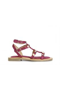 Sandali gabbia in pelle scamosciata con raffia e borchie.