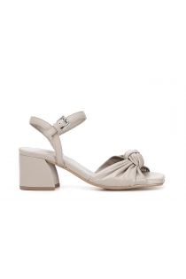Sandali gilda con nodo in pelle su tacco medio, punta squadrata.