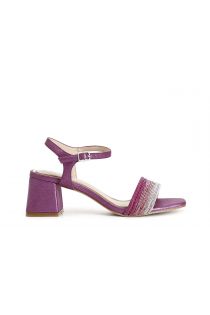 sandali gilda effetto laminato con fasce strass davanti fuxia