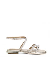 Sandali modello gilda in camoscio con motivo fiocco a cerchi strass. la forma particolare del tacco rende la calzatura super chic e super glamour. la fodera e il soletto sono in pelle. tacco alto h. 2 cm. comodi da indossare e facili da abbinare.