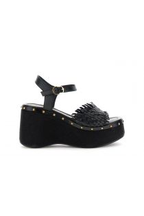 Sandali modello gilda in pelle con listini intrecciati e zeppa rivestita. fodera e soletto in pelle per un comfort superiore. tacco di 9 cm e plateau 4.5 cm ideale per look estivi dallo stile moderno e chic.