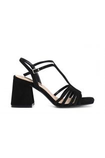 Sandali in camoscio a "t" con multilistini. il soletto è in pelle. comodo tacco di 5.6 cm.