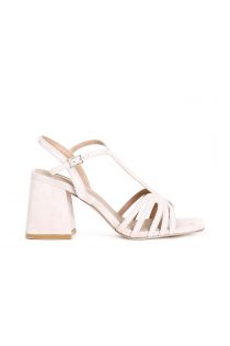 Sandali in camoscio a "t" con multilistini. il soletto è in pelle. comodo tacco di 5.6 cm.