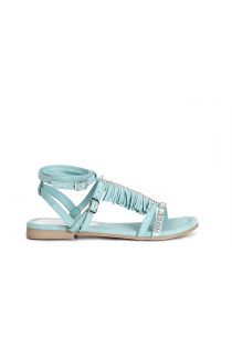 Sandali in camoscio con motivo a "t" sfrangiato e catena strass. fodera e soletto sono in pelle. il tacco è alto 2 cm. comodi da indossare e facili da abbinare.