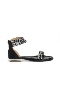 Sandali in camoscio con cerchi strass. fasce con strass su cavigliera. toppone con cerniera sul dietro. la forma particolare del tacco rende la calzatura super chic e super glamour. la fodera e il soletto sono in pelle. tacco alto h. 2 cm. comodi da indossare e facili da abbinare.