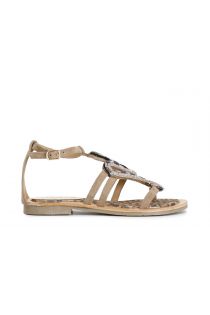 sandali in camoscio e stampa maculata con accessorio strass multi bronzo