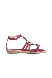 sandali in camoscio e stampa maculata con accessorio strass multi fuxia