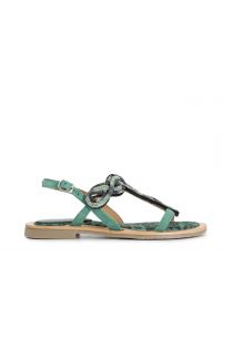 sandali in camoscio e stampa maculata con accessorio strass multi verde