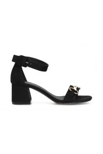 Sandali in microfibra con cinturino alla caviglia e morsetto tacco h. 60mm.