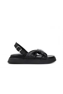 Sandali con nodo in nappa imbottita ultrasoft, comodo footbed e suola alta in micro. Un comodo cinturino con elastico agevola il passo e la calazata.