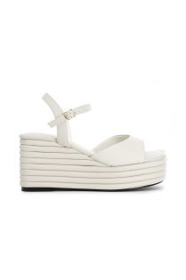 sandali in nappa con zeppa effetto imbottito panna