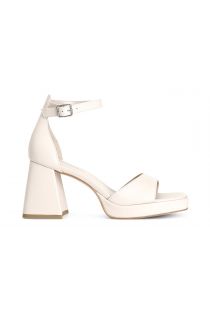 Sandali in pelle con toppone sul retro e cinturino regolabile alla caviglia. soletto in pelle. plateau alto 20 mm e tacco di 80 mm.