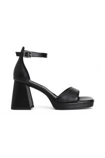 Sandali in pelle con toppone sul retro e cinturino regolabile alla caviglia. soletto in pelle. plateau alto 20 mm e tacco di 80 mm.