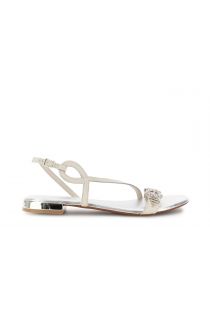 Sandali flat in pelle con design a "t" e cinturino alla caviglia. soletto in pelle. linee pulite dettaglio gioiello sul fronte e tacco basso di 1.6 cm effetto specchio. comodi ma con carattere perfetti per dare grinta ai look estivi day & night.