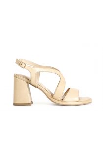 Sandali in pelle con plateau di 15mm. fascia e incrocio sul collo del piede. soletto imbottito in vera pelle. tacco largo alto 70mm.