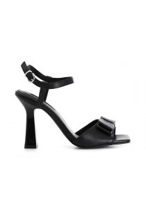 sandali in pelle con fiocco nero