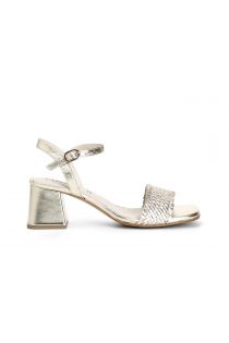 Sandali modello gilda in pelle con intreccio. fodera e soletto sono in pelle. tacco comodo alto 6 cm.