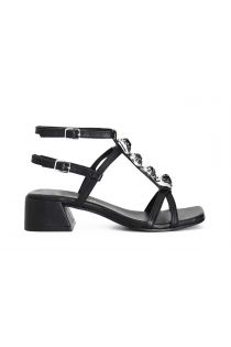 Sandali in pelle con pietre e motivo a "t". doppio cinturino. fodera e soletto sono in pelle. forma squadrata. il tacco è di 4.5 cm.