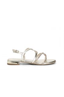 sandali in pelle con tomaia incrociata e strass termosaldati oro